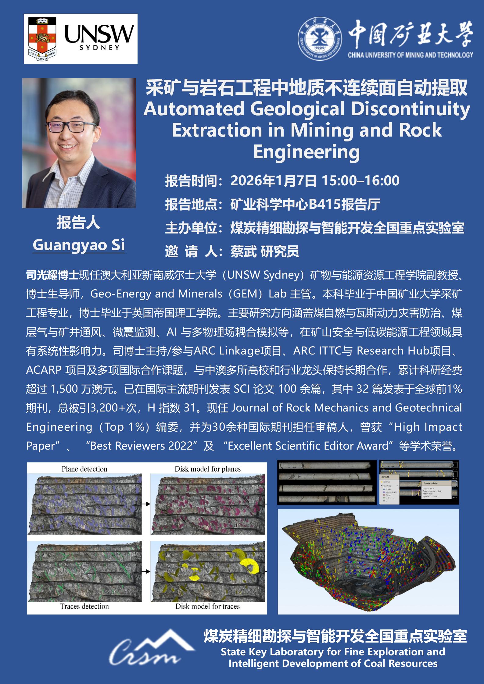 2025年11月4日,煤炭精细勘探与智能开发全国重点实验室主办的“开放课题学术沙龙”在矿业科学中心B415...